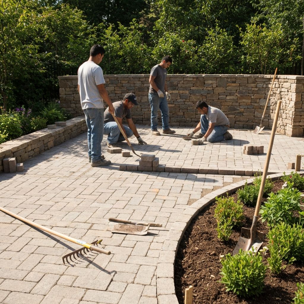 숙련된 전문가가 정원 조성 작업을 진행합니다